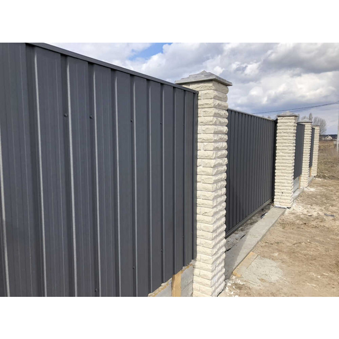 Профилированный лист С-8x1150-A (VikingMP E-20-7024-0,5) часто используется в Никольском для монтажа забора. Представляет собой металлический оцинкованный лист с покрытием. Общая толщина стальной основы с цинковым и декоративно-защитным слоем составляет 0.5 мм.Проходя процедуру холодного проката, сталь приобретает рисунок из повторяющихся волн. Такая конфигурация придает профилю жёсткость.